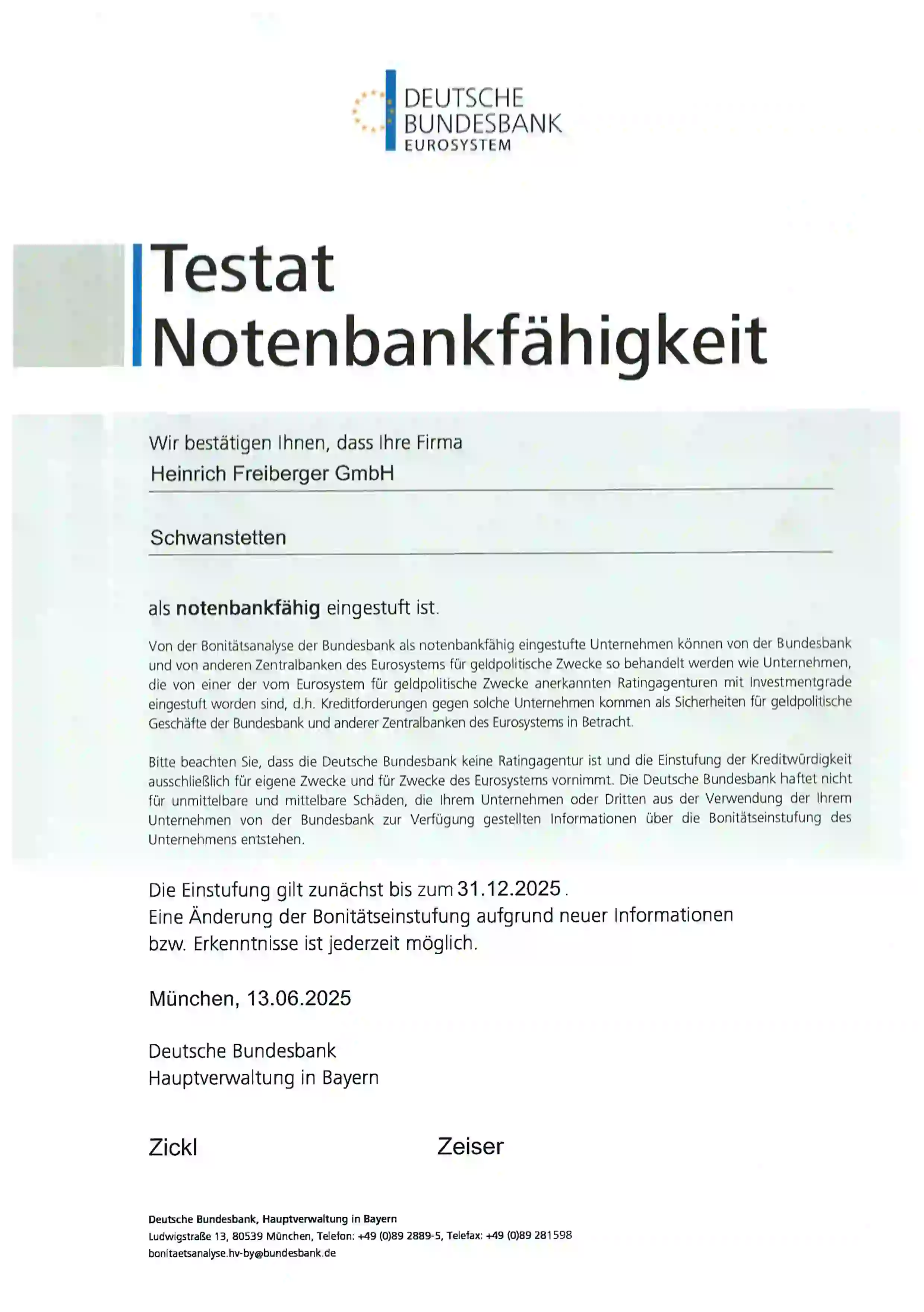 Feststellung der Notenbankfähigkeit